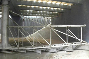 盡管與傳統斜板沉澱池比較,高密度沉澱池在運行過程中發生斜板堵塞的風險已降至低(dī),但(dàn)仍然會有少量化學汙泥積留在斜板區,為了保持長期運行過程(chéng)中斜板的功能效果,刮泥機上設有自動反衝洗係統。不需停池,即可對斜板進行衝洗,減少了人力消耗,以及停池(chí)衝洗所帶來的處理能力降低等問題(tí)。